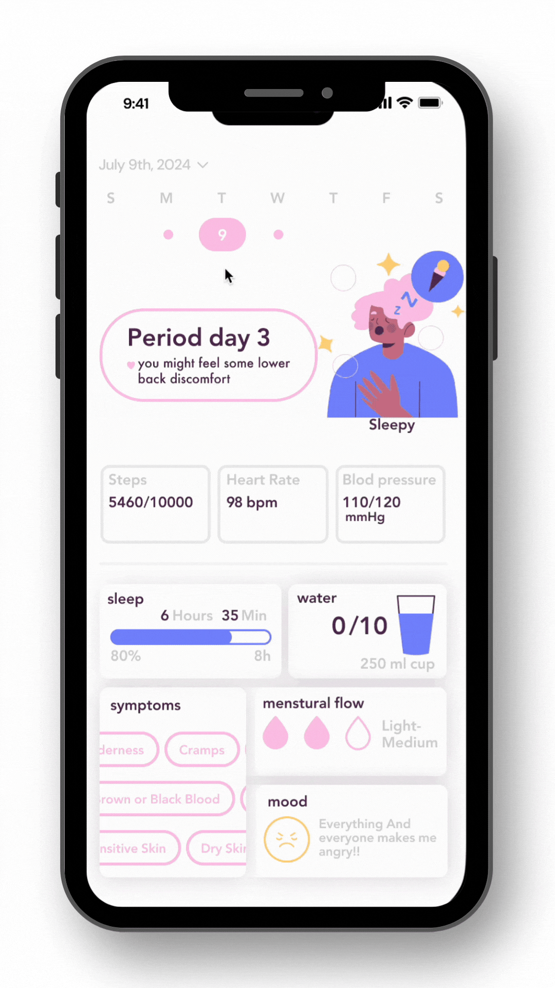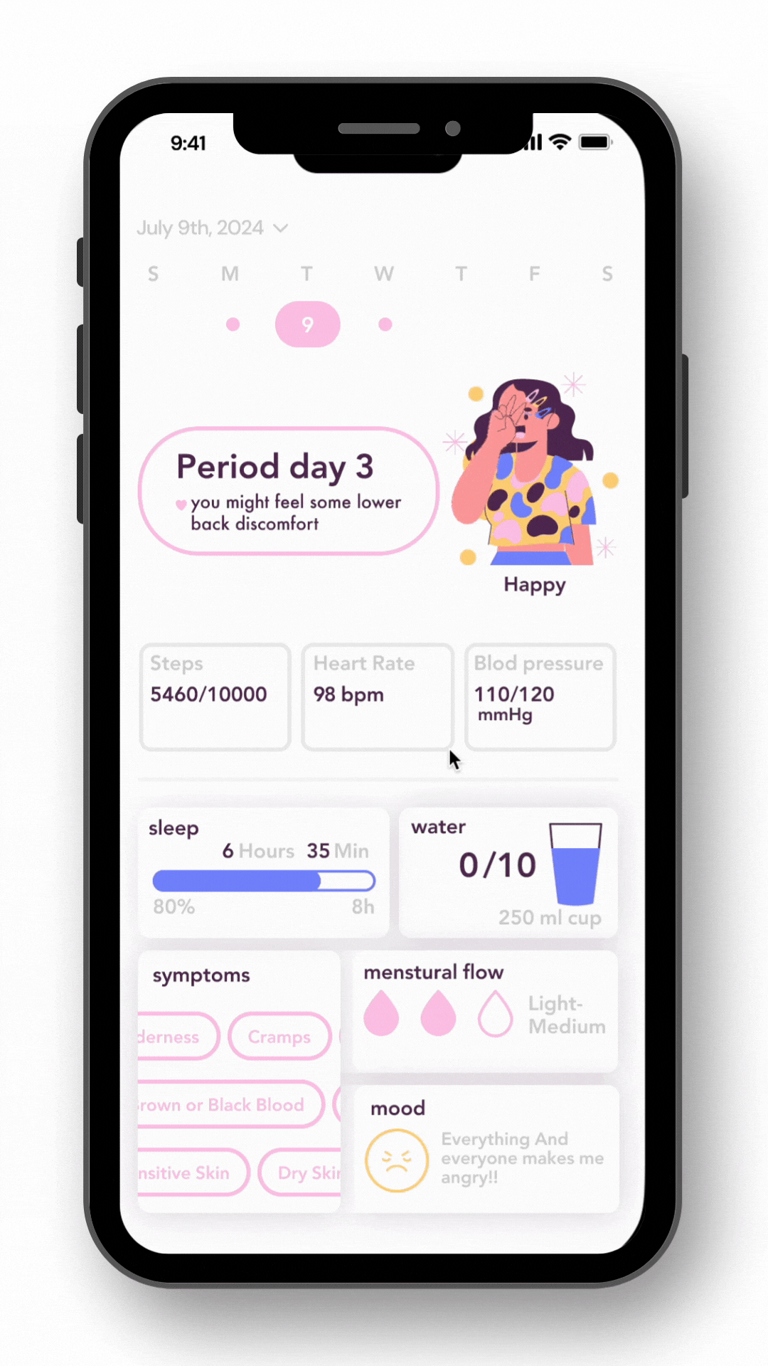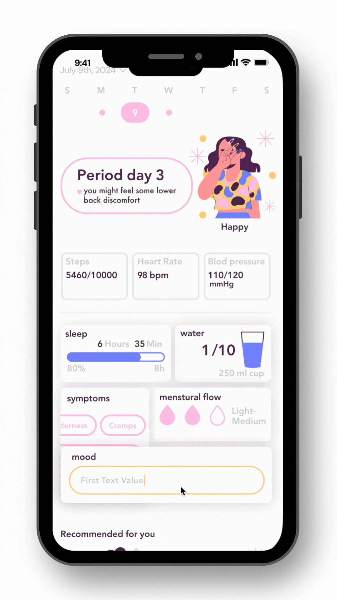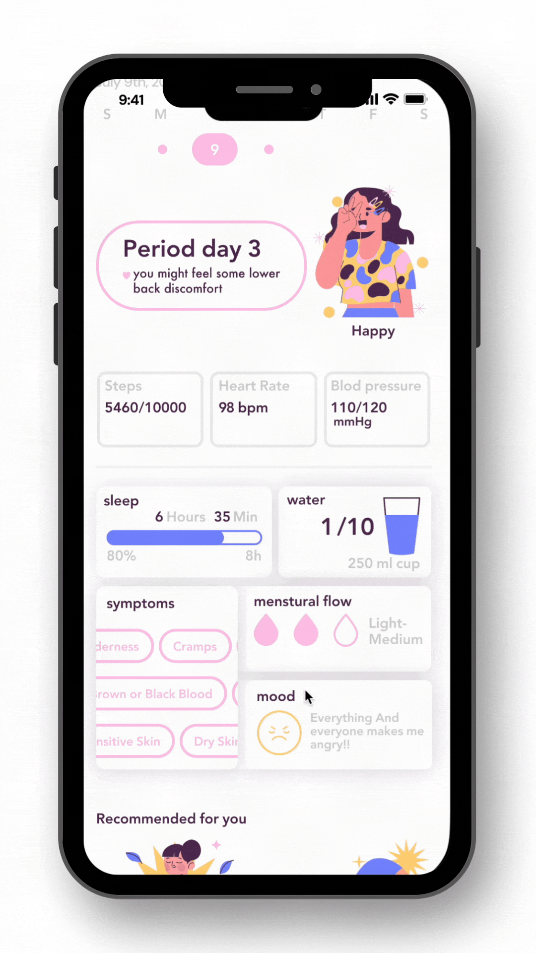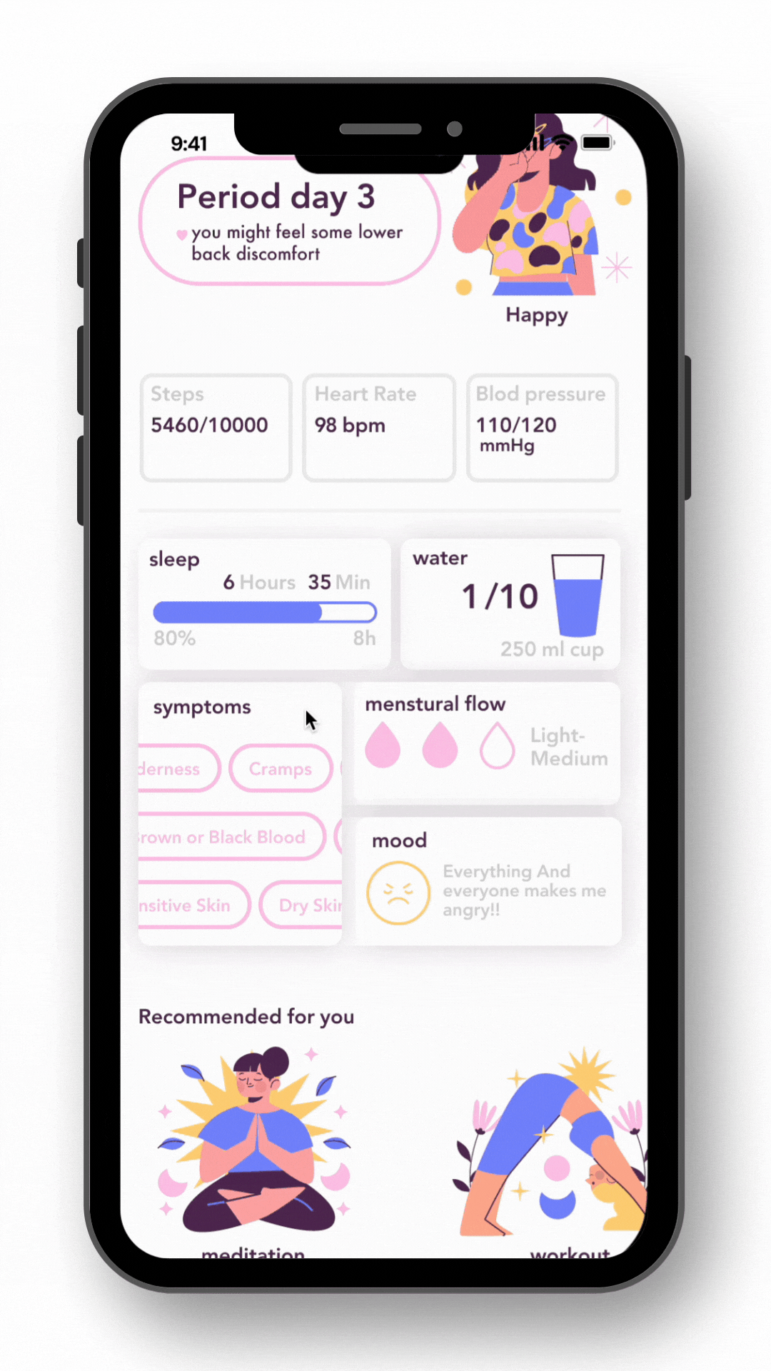 An app for menstruating women that combines solutions for both body and mind. This integration helps women manage both their physical and emotional health during their menstrual cycle.